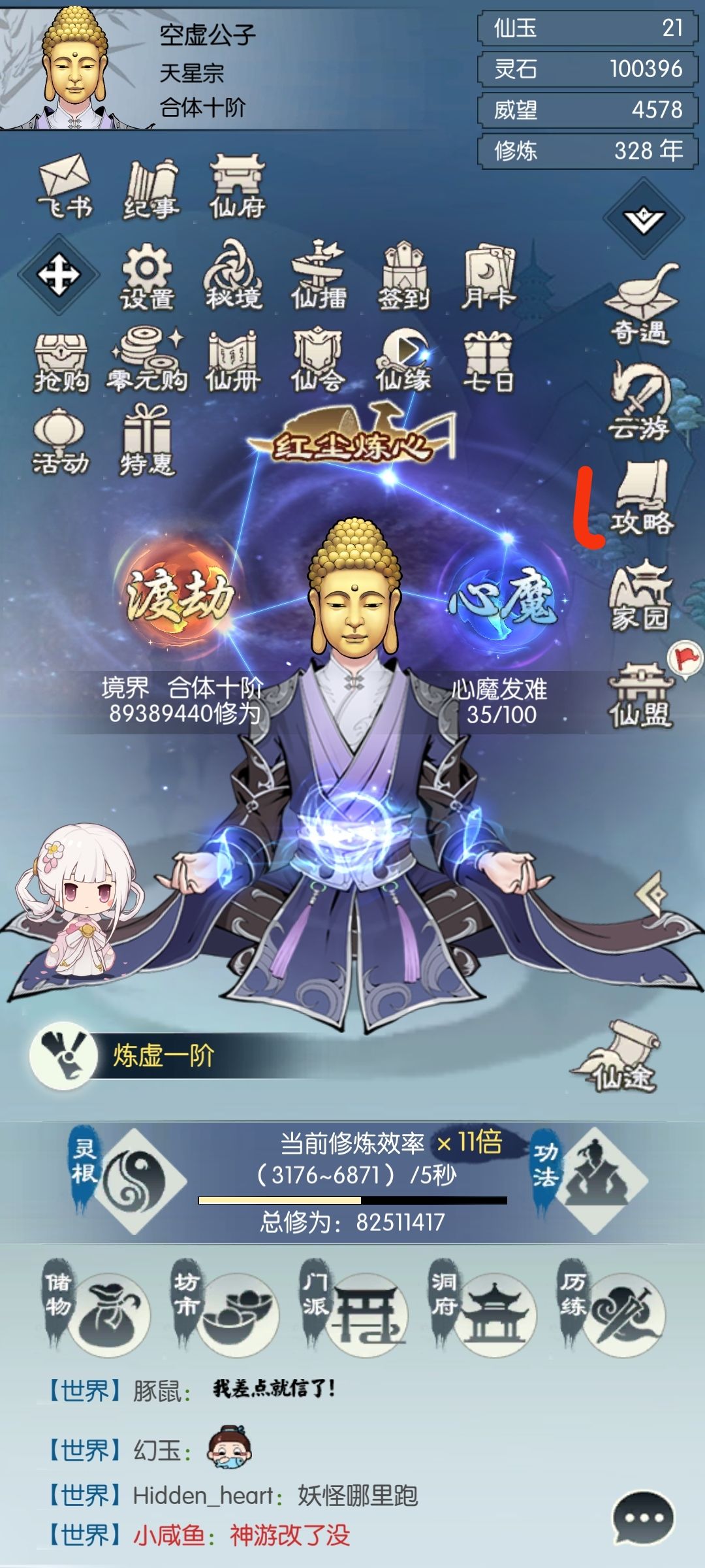 太好玩了,零氪也能玩,我现在榜前50还是有的,新手什么都不用管,升修为,生妙法,多看广告,功法一定要按着攻略走,不然很难补,除非你氪金很多,比如说一级宗门罗烟决,玉不要用,抽奖也先别抽,等炼虚期,直接抽蛟龙啊什么的