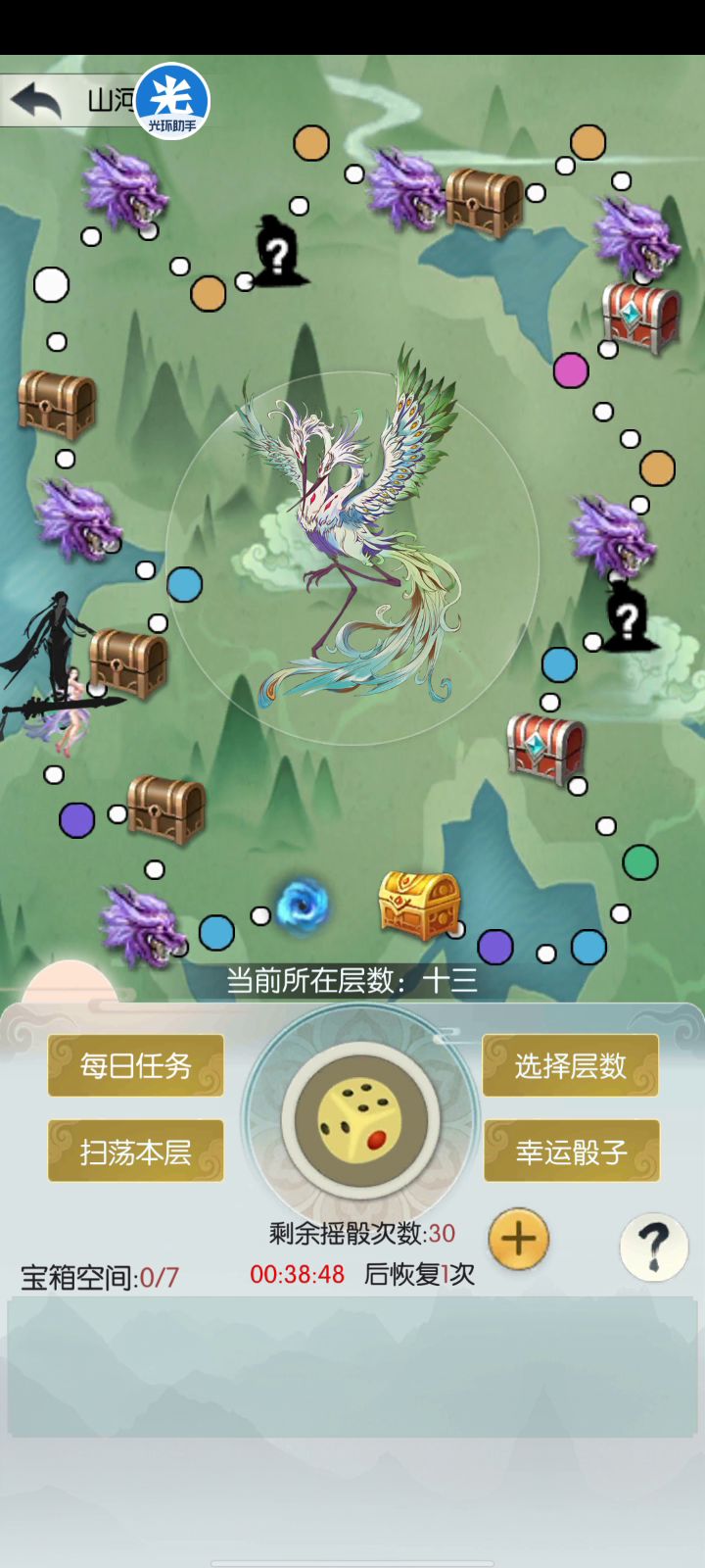 跑山河攻略,今天运气太差见谅啊。大家将就看看好了。我是从11关开跑的,至于为什么从11开跑是因为所有关卡商人11的商人最远,加上开局送的3个自选骰子可以让我们有优先选择权而且材料换龙玉也是从这一关开始每种材料都能换20龙玉😁。整个山河副本能跑的商人层数据我的经验跑法是:(11、13、18、9、7、3、5)唯一需要注意第7和第13关最好直接用一步到商人的方式抵达,然后当天最好停在其中一层商人的位置第二天就直接少跑一个。