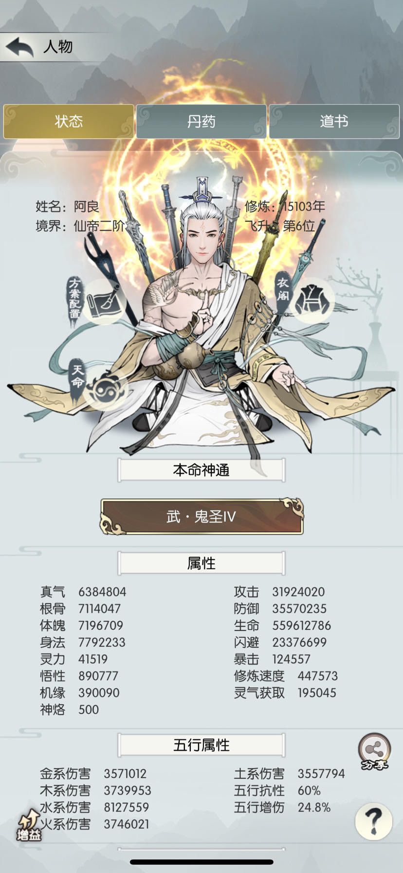 本篇介绍飞升后到化圣前提升属性的思路和方法。 第一部分说一下主要玩法的属性要求; 第二部分介绍五行、四维如何选择,这应该困扰过不少新玩家; 第三部分介绍提升属性的方法。 ———————————— 先上个全文总结: 1.化圣前,主五行>副五行>身法>真气>根骨>体魄 2.仙玉使用顺序,道侣(秦、萧)>自选神器、自选神丹>(兽栏、药童、三相之力、禁地次数)>弟子(大阵、禁地)>长老练功(玄仙前)>灵童