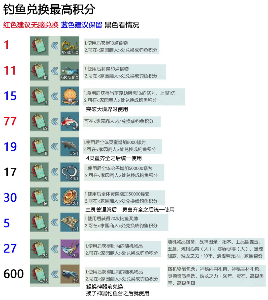 家园钓鱼烹饪积分兑换,以及哪些建议兑换