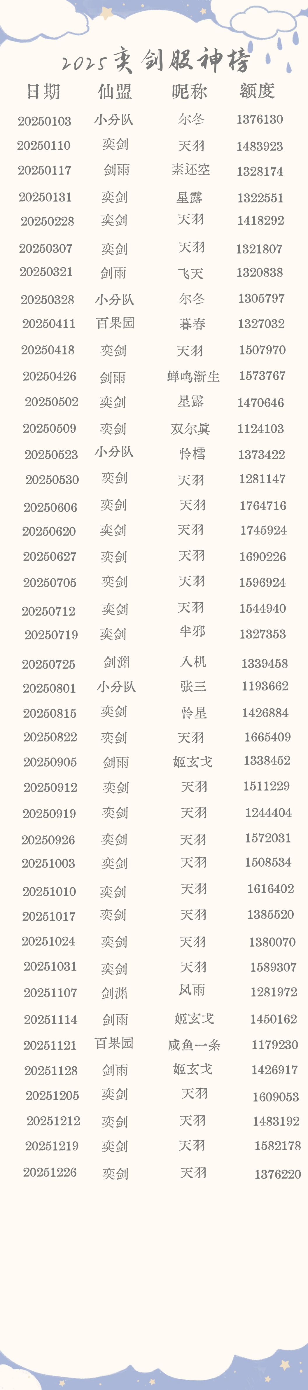 今年仙盟里一共诞生了42位股神~ 而我们奕剑操盘手天羽锅占据23个席位制霸九州~ 让我们一起回忆天羽锅的名言:这期(股神)给(我)了在25年最后的收官股票中,在操盘手的操作下达成了股票前3即奕剑历代盟主奕剑道友交流鹅群:664665635,萌新攻略,心得交流,升级辅助,和谐无极
