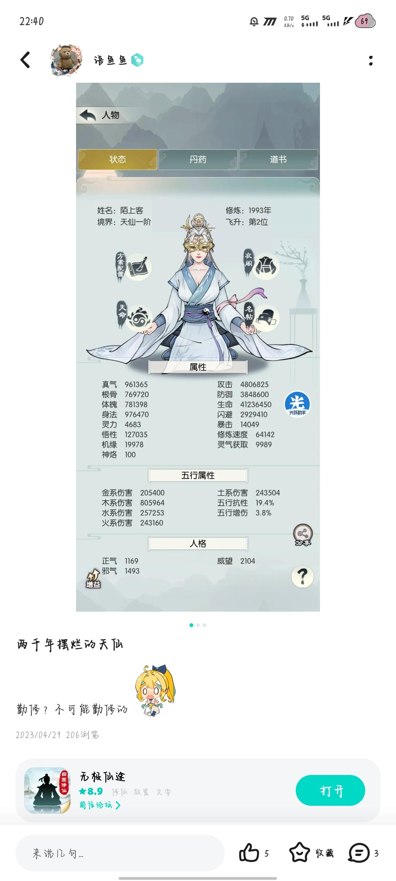 余本争强好胜之辈,昔年浸淫王者之境,奈何瓶颈横亘,屡冲不破,遂心生倦怠,茫然无措。偶于TapTap仙榜觅得《无极仙途》,见其高评盛赞,览其评注,心向往之,遂弃旧途,入此新境。初入无极,万物皆新,余满怀憧憬,唯凭己意摸索仙途。初始唯愿独隐田园,闲修仙道,不问世事。奈何入门之日已迟,彼时已有道友捷足先登,首飞升仙域。余孤身探路,屡陷迷障,多走歧路,苦不堪言。初入一盟,名曰“咸鱼”,放眼盟中,唯盟主