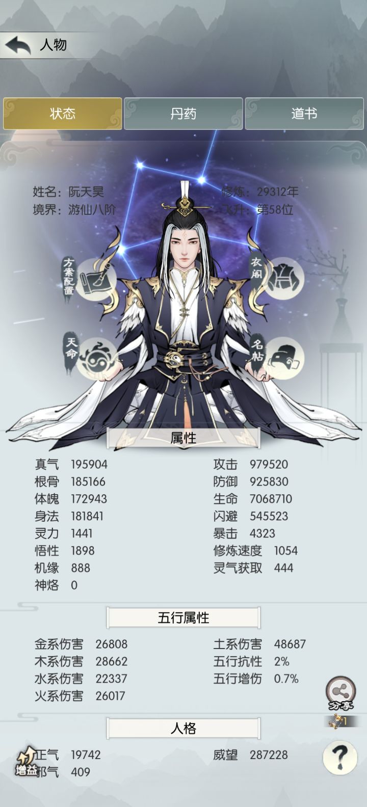 不觉间实际道年6.5w,表面道年10w年惹,也是进入养老状态了。戮仙也是上周通关完毕,只剩刑天和高难星阵没打通。不知能不能熬到通关
