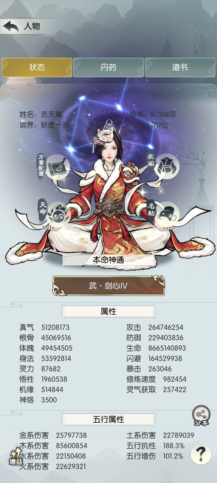 也是在两万年达成5000主五了,目前大部分副本也都已经过完,剩下的副本镇魔双神6,戮仙37,星宫朱雀水坎。目前进度还是很满意的,双神主要是被血量卡住了,星宫到了朱雀是真难打,水坎太卡了。唯一的遗憾或许就是上次论道只拿了第二吧,毕竟谁能拒绝拿一次“天下无敌”呢,也是挺可惜的下个目标是用最低血量过关双神,目前看到tap上攻略最低是45亿血,希望能搞个40亿血过双神微氪一路走来真的很不容