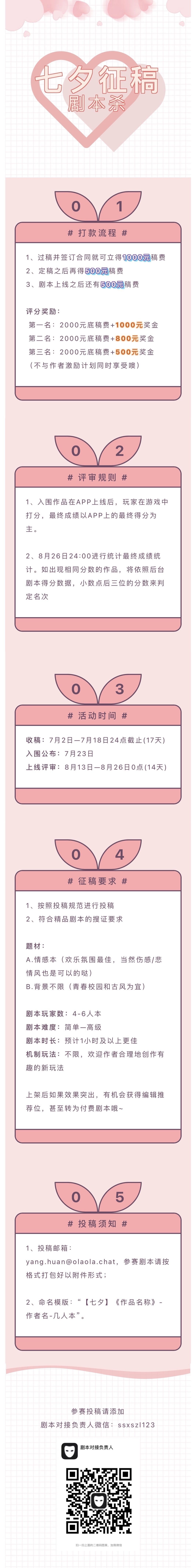 [爱心]七夕剧本征稿活动来袭[爱心] 不用再等上线 过稿即得【千元】稿费 money💰轻松到账~ 快来戳下方🔻链接了解详情吧