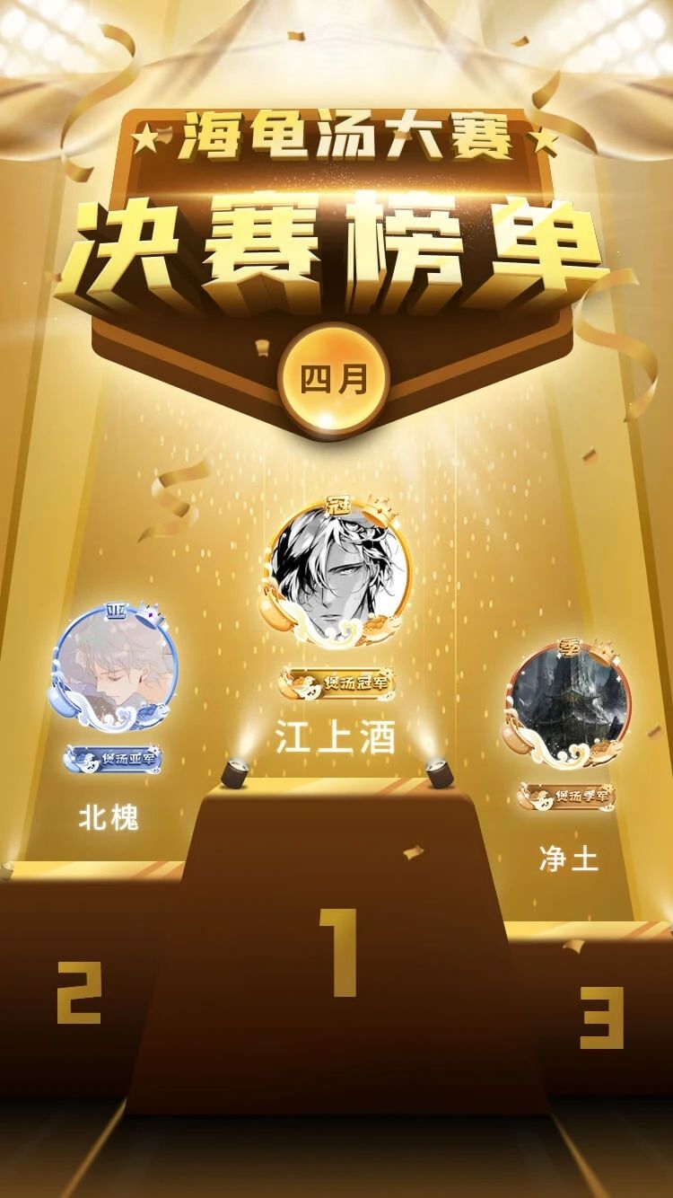 海龟汤决赛完美落幕👏 众多优秀侦探的角逐 让比赛精彩不已 大家期待的榜单出炉啦 👇快来看看是谁光荣上榜啦! 让我们恭喜👏以上三位选手 其余侦探们也不要灰心在今后的更多活动中还有机会展现你们聪明的大脑~