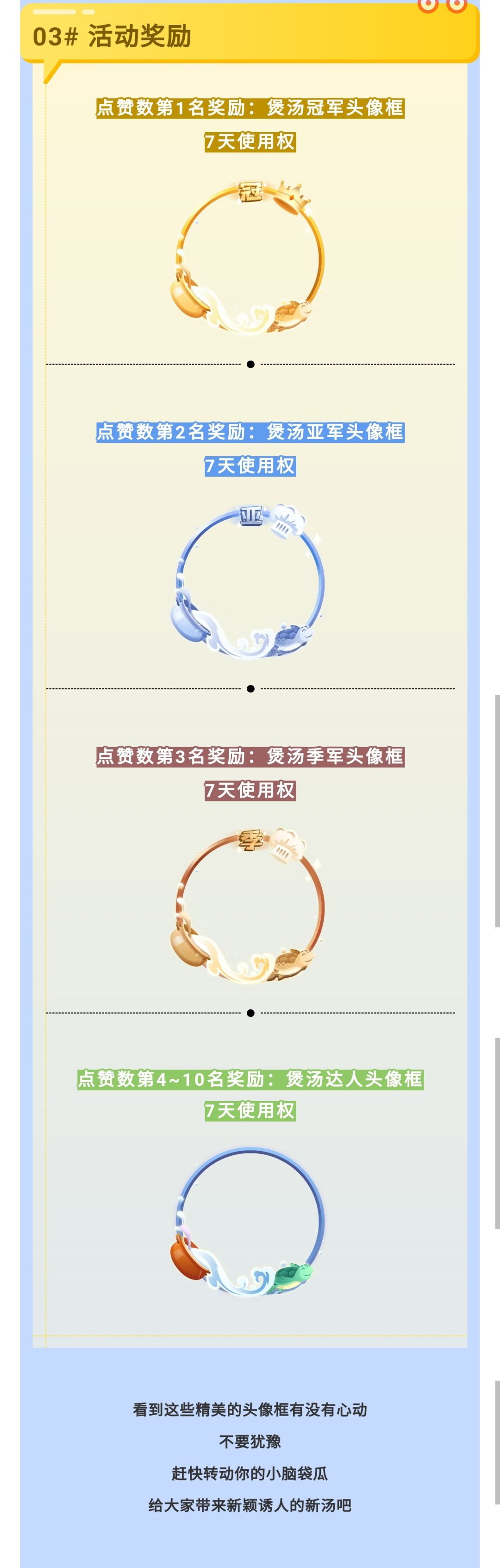 活动期间🈶️ 1️⃣平台流量扶持 2️⃣专属活动曝光 3️⃣优质作者标签 带着浓味鲜汤来参加吧🐢 煲汤高手就是你!👏 双榜单机制[机智] 单人最高600元等你拿哟~ 心动就赶紧戳👇链接