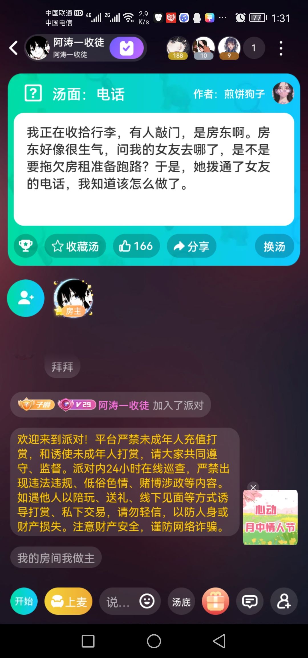 这是一个新手入门必玩的汤 汤面:电话 我正在收拾行李,有人敲门,是房东啊。房东好像很生气,问我的女友去哪了,是不是要拖欠房租准备跑路?于是,她拨通了女友的电话,我知道该怎么做了。 需要你们问我问题,然后我会回答你“是”“不是”“不重要”,然后通过你们的线索拼凑故事的真相,大家一起来还原吧! 游戏开始 问:是我杀了女友 答:是 问:我要跑 答:是 问:房东知道是我杀了女友 答:是也不是 这个前面都没啥太大营养,就后面这个“电 话”,发挥你的想象力,一起恢复案件的真相。