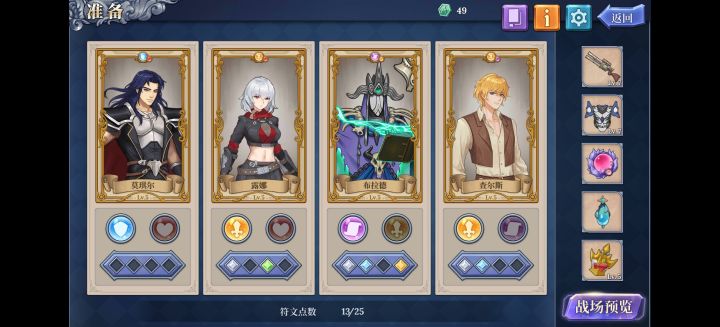 可以悔棋大型幻境用3级初始队就够了。大部分时间奶妈点前两个符文无脑输出。药代加能量的,手风琴点第二个符文可原地用技能多产两张卡,机甲有多余能量就招盾,老头视情况补刀。
