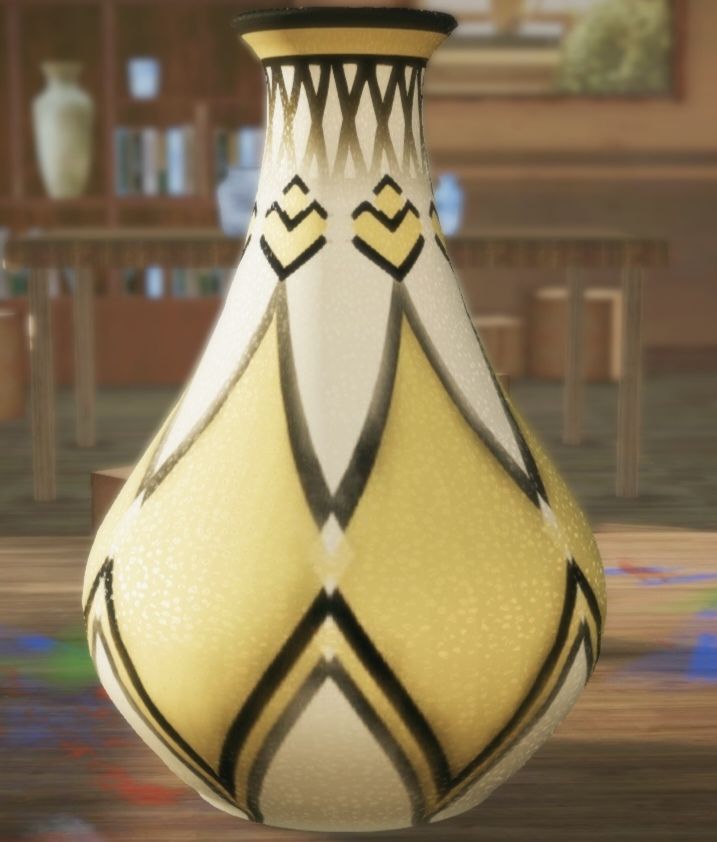 玩了一段时间了,有些器型做不了,现在没灵感了。今天玩的时候被邻居看见了,一个劲叫我放花进去,我也觉得插花好看,可惜这游戏没这功能P9 友女做的,第一次玩,忘记上釉了,不过还挺有特色的,搞完上架就问我作品热度怎么样然后——40热度不懂那个热度上限是怎么设定的,有些好作品才三百多,目前只有P 1破四百,424。不知道大家作品的热度怎么样?