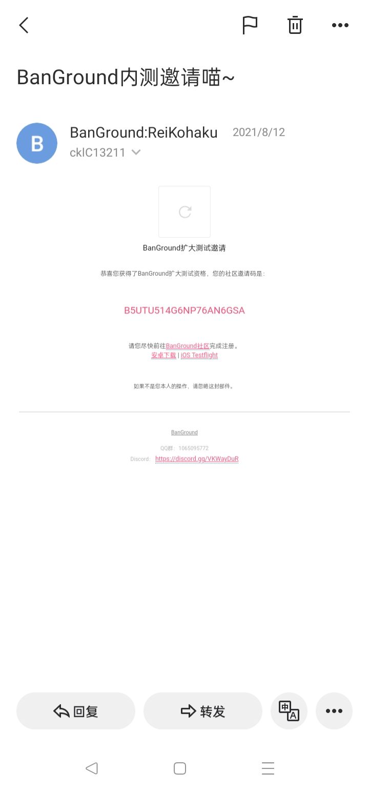 各位期待已久的BanGrounder:大家好!这次可以高兴地通知各位,BanGround的扩大测试就要正式开始了。本次扩大测试主要是为了测试功能可用性和应对大量用户时的表现。因此,我们将以如下的形式发放邀请码:- 欲参加测试者,填写指定问卷(问卷将于8月10日18:00下发到玩家群公告内)- 一周内(暂定)每天按顺序从后台选取100人,发送邀请码邀请码将发放到您的邮箱内。获取邀请码后,