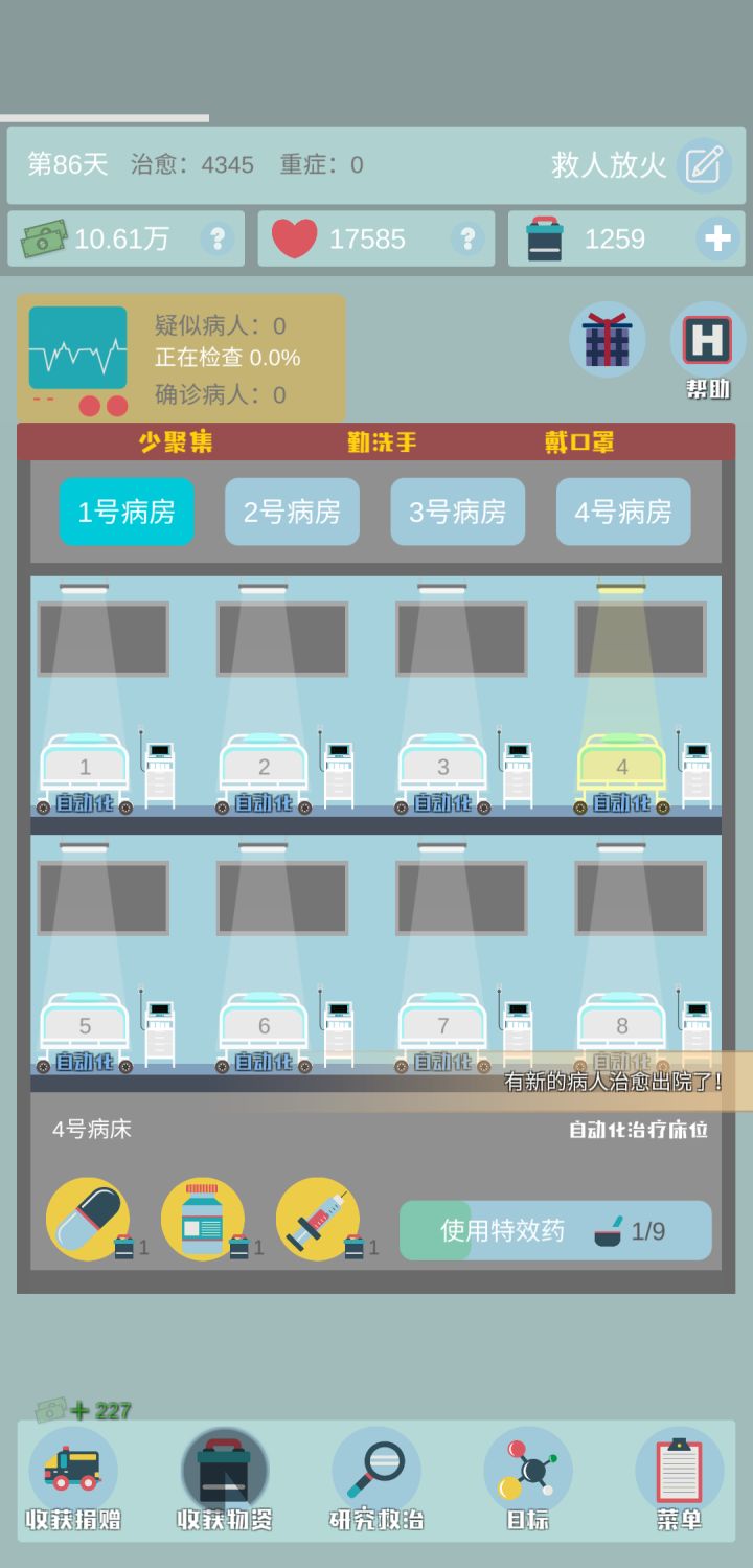 我算了一下,我现在就差几天就过关了,每日疑似也只有十个人了,为什么会一直弹出这个页面呢?一定要把所有病房开开吗?
