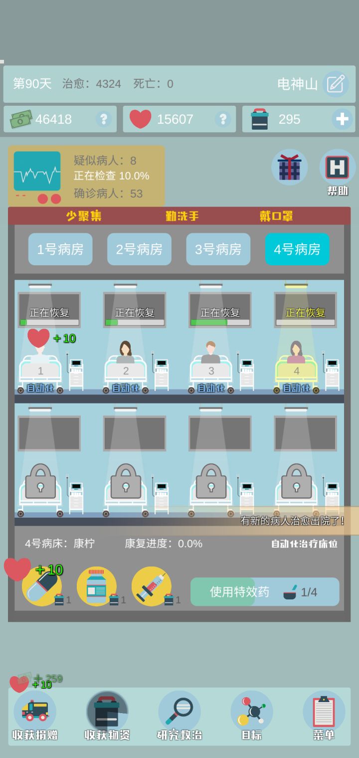 我算了一下,我现在就差几天就过关了,每日疑似也只有十个人了,为什么会一直弹出这个页面呢?一定要把所有病房开开吗?
