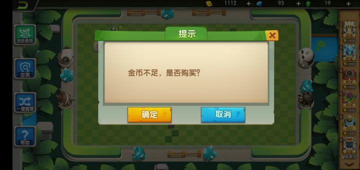 金币有一千多却购买不了防御塔