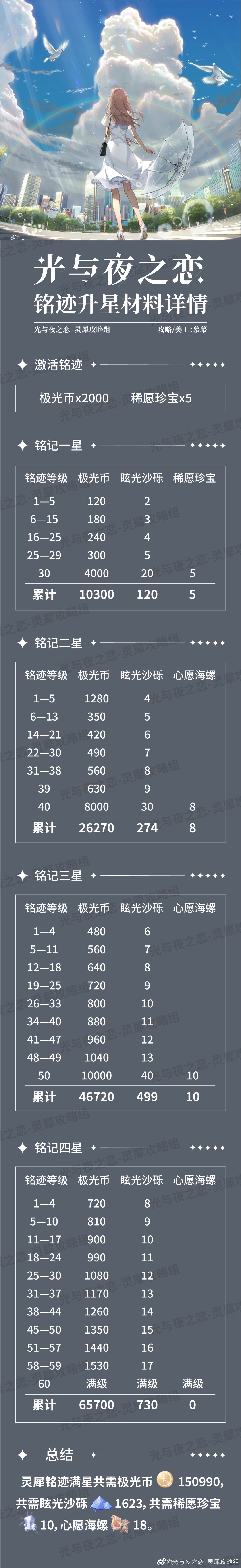 感谢慕慕和阿榕的铭记升星整理,还有慕慕的作图。 数据来自五星和六星的铭记升级,因为一二三四星有等级限制,如果有不同,欢迎设计师帮忙捉虫。 这是一个铭记的总计升星资源所需,如果一张卡开了两花及以上的话,就需要以下资源✖️3。 五六星的金币实际使用和有1490的差距,其他材料都一样。