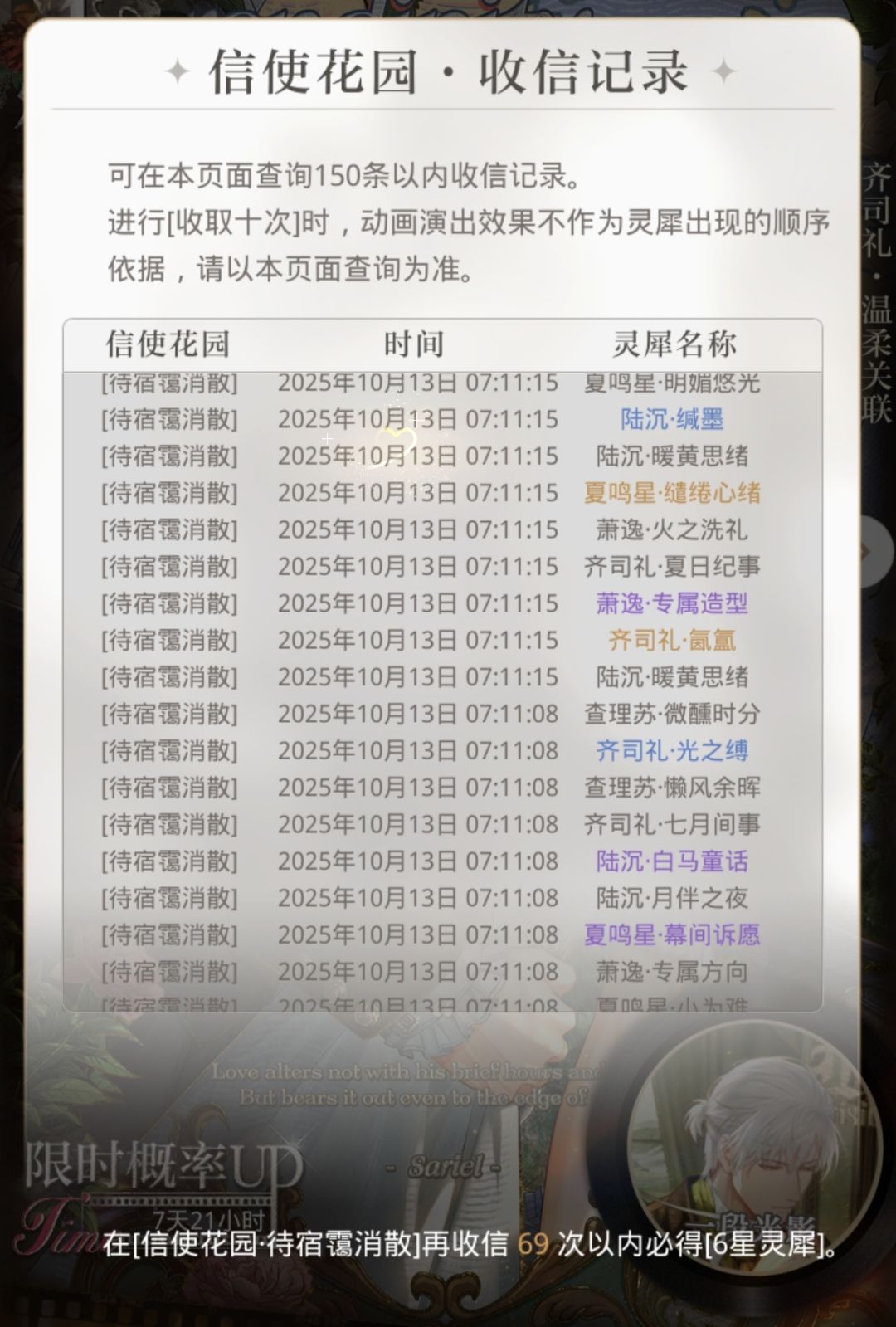 “拜你打翻的茶杯所赐,现在我们身上是一样的味道了。” 获取方式 参与活动【羁梦裳影・摇影】(11月27日 05:00 - 12月5日 04:59)获取。 眷影・隽心花招系列 [6星]灵犀 齐司礼・摇影 属于眷影・隽心花招系列,为单面横版限定灵犀,完整全画幅光影可在专属系统[萦怀轻语]中鉴赏。 ▼灵犀剧情 [6星]灵犀 齐司礼・摇影 附带剧情为昼夜之畔语音约会,可在【心动邂逅→倾听→余音