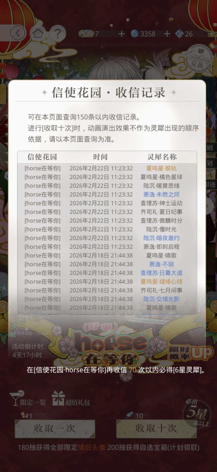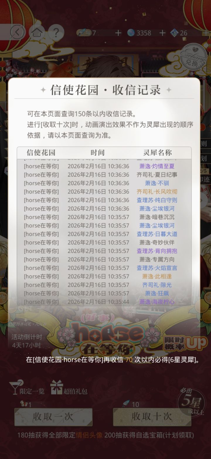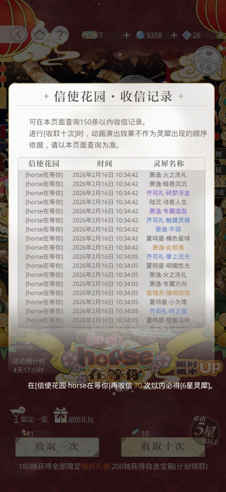 130抽出6金,感觉很欧,但是歪四张常驻,叠一张花,我吐了啊呜呜呜救命🆘