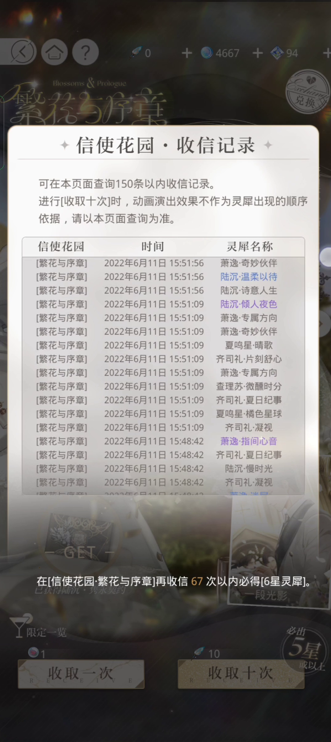 普通十连券*4+活动十连券*2+小熊,一共210抽都不一定有 100抽随机给66,130才抽到77,之后一路非洲人不易,150抽到11,190抽到00,最后拼两把,都没中,200抽自选换55,终于齐活了π_π结婚去了