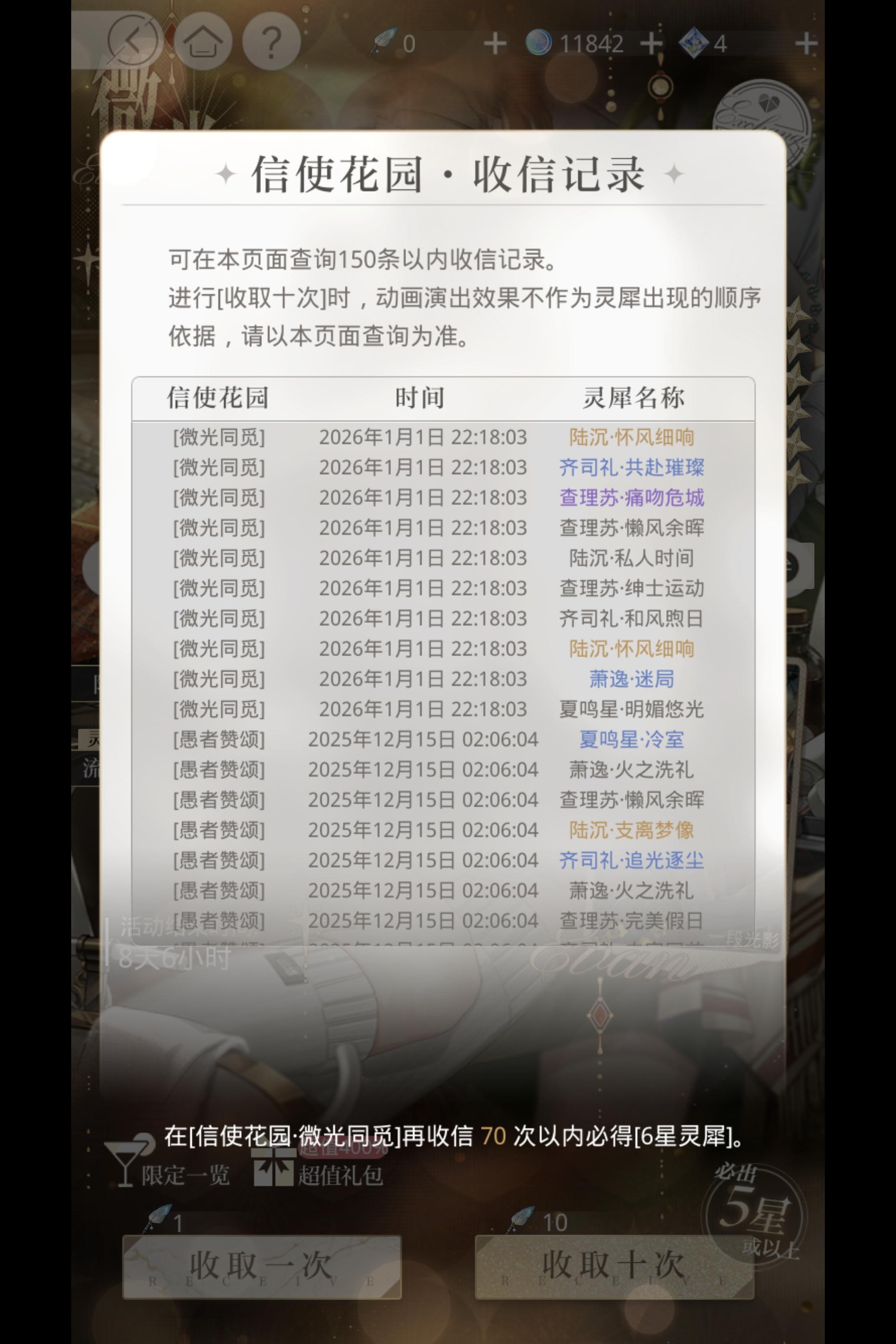 陆沉你对我有点太好了,我将变6推(maybe)小熊加上囤的书简够换一张了,根据我的抽卡经验我的号容易出陆沉的卡(5人好感度差不多),遂抽之。但是没想到这也太容易出了
