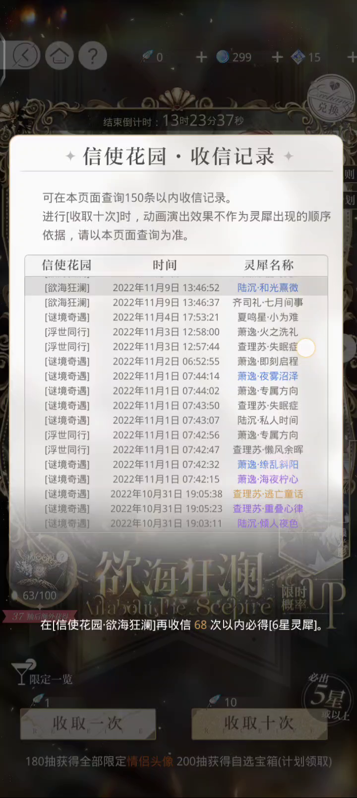 呜呜呜我又相信玄学了,今天凑够十连了来抽一下,自看到那个说点下鸟在点两次单抽的姐妹的话后我已经连续五次十连出金了,没歪,我可以五张allin了! 自从玄学后,我在游戏已经开始脱非入欧了😽