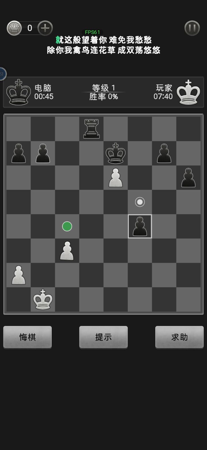 2,建议加入教学,要不是在别的国象网站上学过,我都不知道小兵走到尽头可以变成皇后…在电脑的微软商城看到国象,里面有几百个关卡和残局,建议在游戏里也加入多一点关卡和残局。