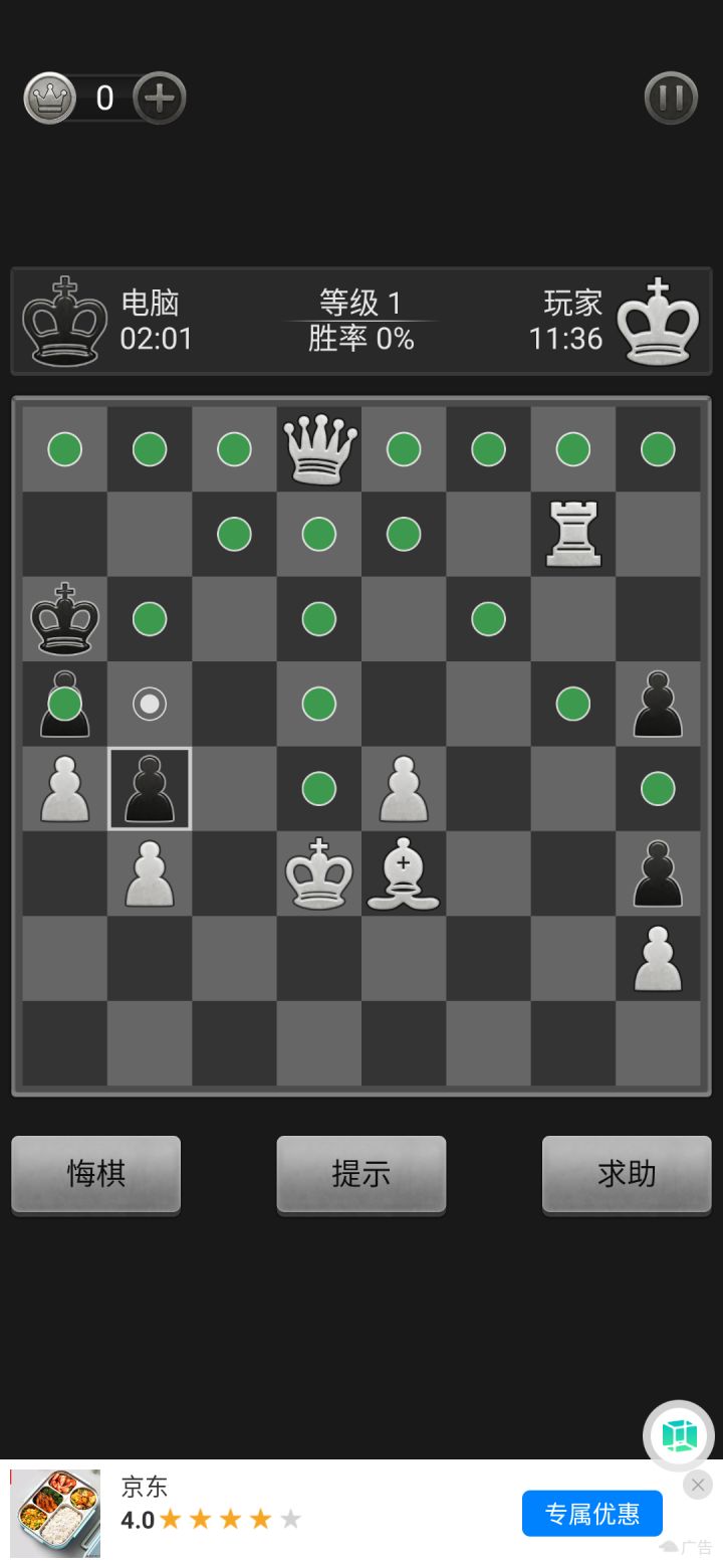 鏖战了快20分钟才勉强战胜1级IA。说实话确这个和chess3200有的一比,和它下都要想好之后3,4步该怎么走,十分烧脑。在下脑力有限,玩10几把才明白玩战术是玩不过它的,我一般是靠换子赢的(不是什么子都能换),还要看脸🙂,在这分享一下成功的一局。对了老是有人说这个没有黑棋模式,我在这告诉大家有黑棋模式,只要打赢它,下一把你就可以用黑棋了😉