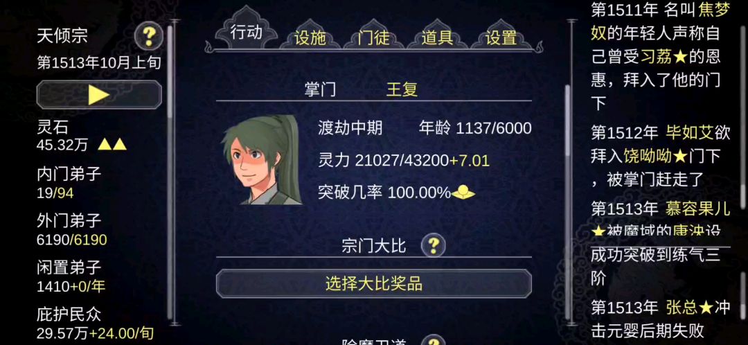 天阶装备获取总结下来就是钓鱼,有一件可以钓无数件,大比用天阶装备钓,钓出来就扒,安装到天赋弟子身上