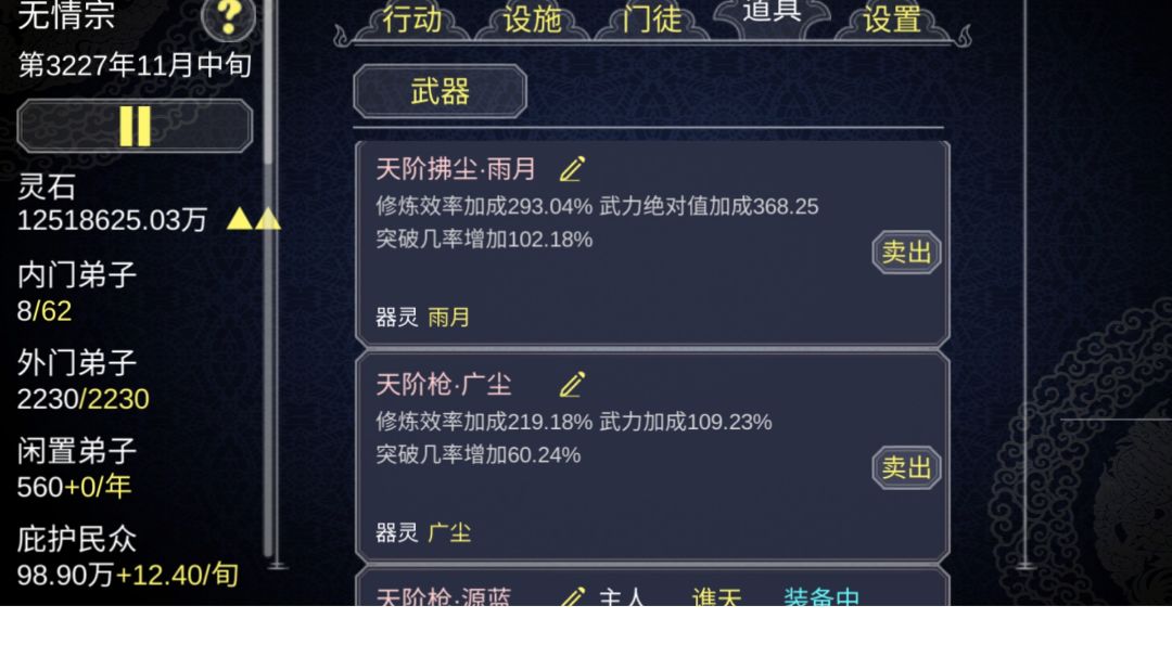 大部分不匹配的天阶我都是直接卖灵石 (这个白嫖是真的舒服)