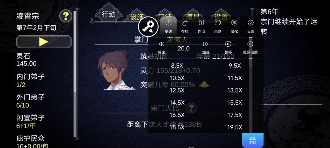 在八门神器的变速沙箱里把游戏导入本地,点击导入后的游戏,开始玩后点击这个工具盒这可以选这变的速度了,最多可以20倍。就是调20倍速的话,有时候卡退,注意保存