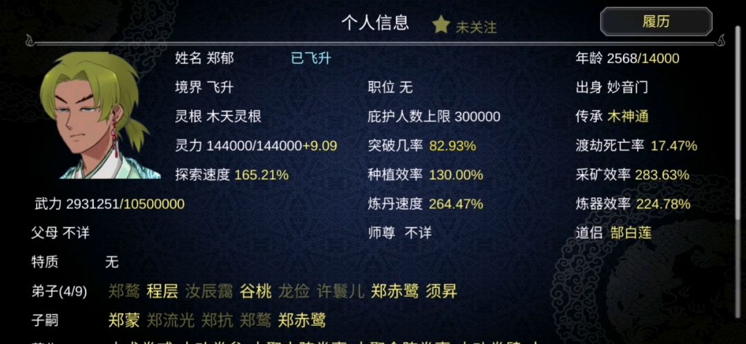 没嗑药,这个人就一步步飞升了。 他儿子郑蒙跟他媳妇也快飞升了🤣🤣, 一家人运气强的爆表。 二周目准备只解锁伏魔峰。