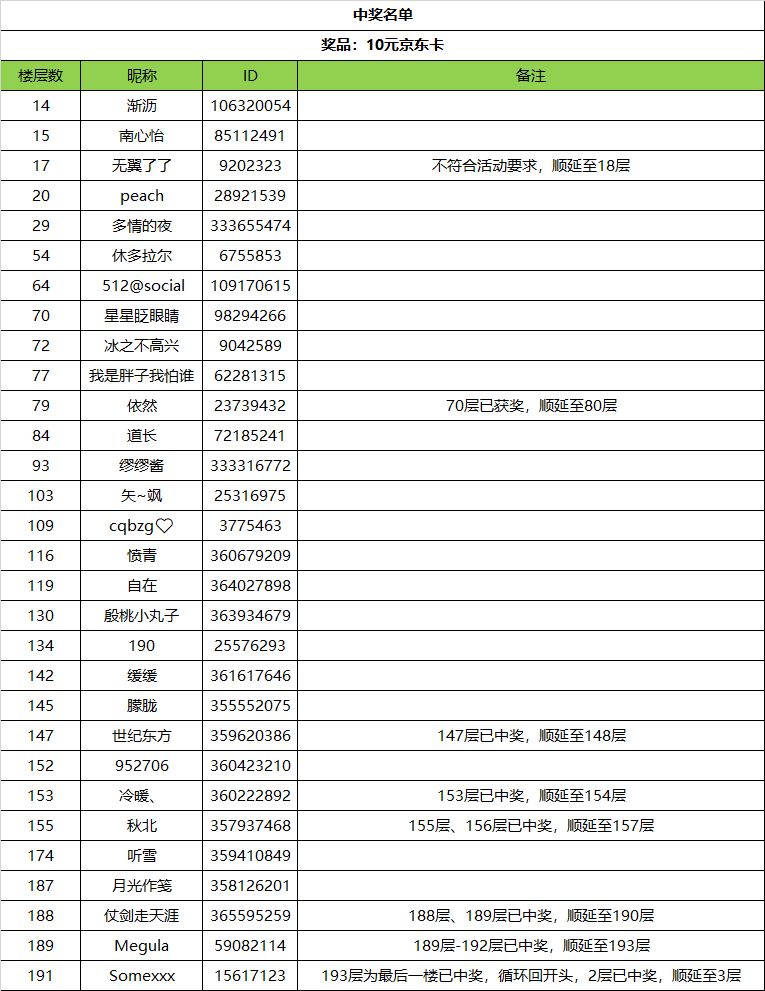 中奖名单来啦!! 这次活动参与人数超多的,但是为什么大家都把楼层删了呢TAT 请中奖的各位2021年5月28日下午6点前,联系官方QQ:3021800833领取奖励哦!过时将无法再进行领取啦! 附上随机数抽奖截图: ==================================================================== 嗨,各位优秀的斗士们 五一劳动节假期好呀~现在