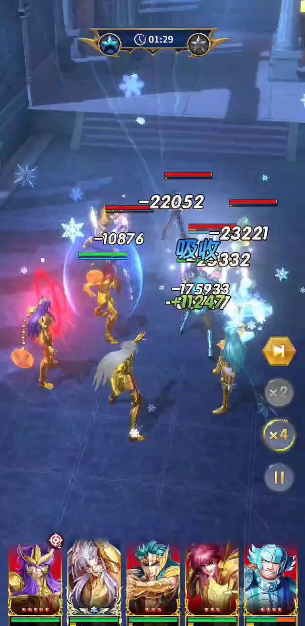重点是童虎大留着打断黑仙女,武仙大用来打断英仙大,狮子大尽量不要打在盾上,白羊大来补输出以及控制,看情况,最重要的是运气,我也就试了几十遍吧😂😂😂狮子刚刚开了圣衣,材料不够只有8级,童虎圣衣10级,其他人8星没开圣衣,阵容比较平民,基本上是活动给的