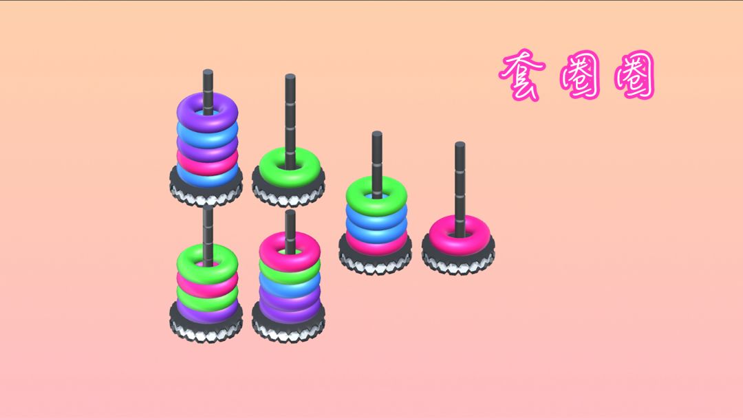 游戏的挑战就是堆叠一样颜色的圈圈,思考,制定战略并预测每一步。