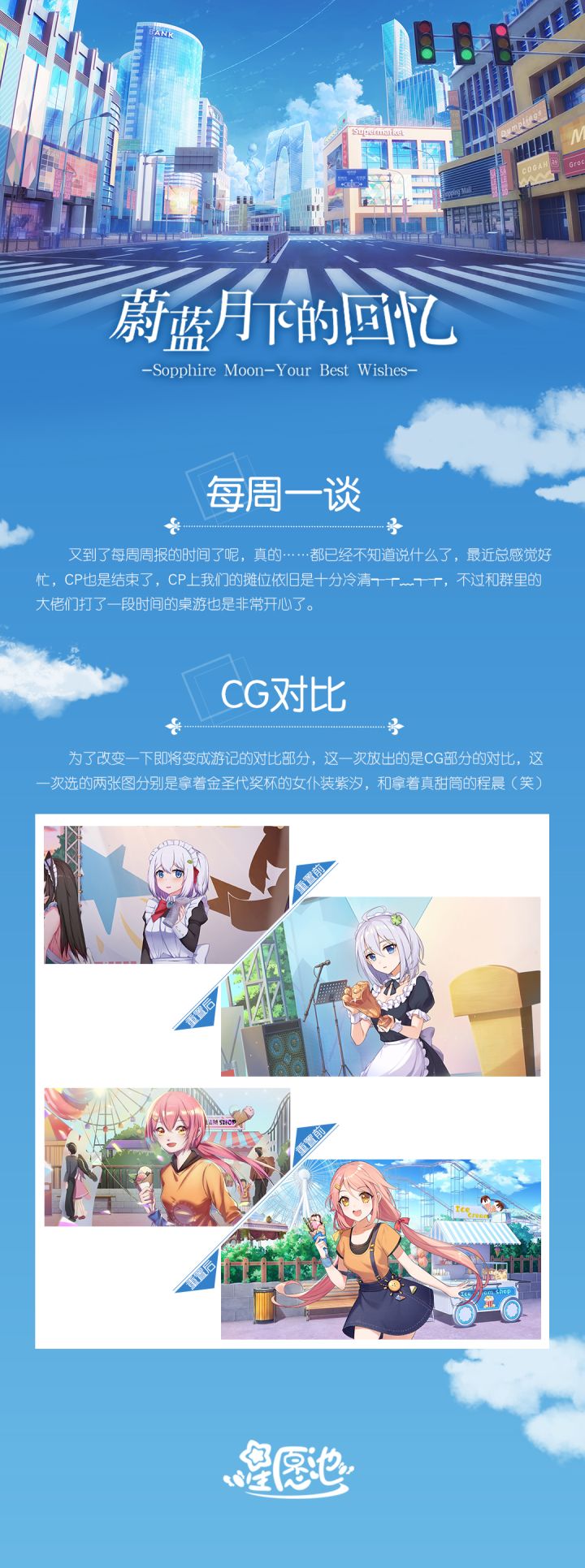 各位小伙伴大家好~这一次不再是游记了哦~快来看看我们的主角们吧撰稿人:主催刊期:2020.08.08====【周刊详情如下】====建议小伙伴可以关注我们“官方社区“已便了解后续更加全面的通知信息。星愿微博:←(点击前往)星愿Q群:731679522感谢小伙伴们一直的支持与鼓励 !往期剧场:蔚蓝月下的回忆蔚蓝月下的回忆_街区蔚蓝月下的回忆_家&远方蔚蓝月下的回忆_