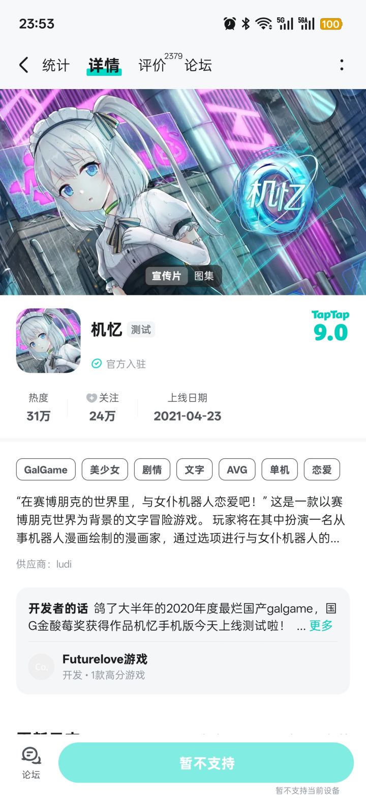 目前在taptap为测试版,这是一款轻量型的宝藏galgame