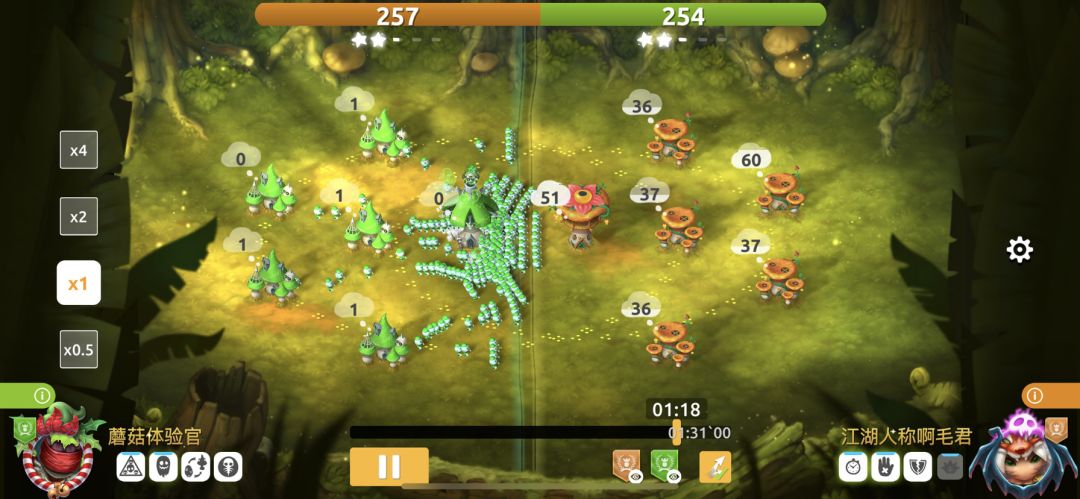 因我第一波失误没有直接进攻中间塔楼造成前中期巨大劣势差点都想投降了😅,中期敌方抓到我前期犯错的机会占领了70%地盘兵力四倍于我。