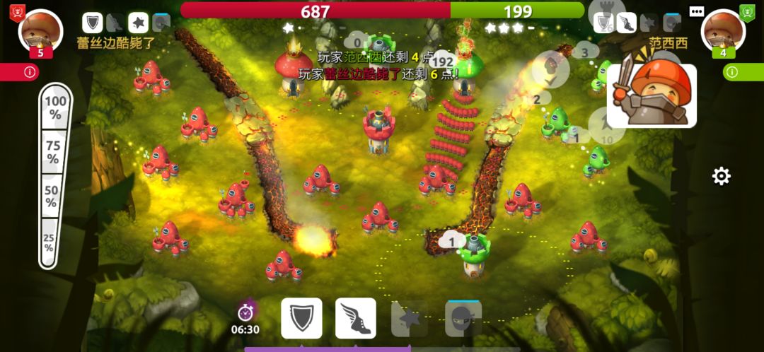 注意点: 1,首先分布占领马上升,不然兵数量一直会在饱和状态无法增加 2,布置完立马回防后,需要立马占领路口的小蘑菇 3,等待兵种增加,对面一定会在兵种最大时进攻,不过要保证路口的蘑菇(或者塔,或者铁匠铺)人数为零 4,进攻的时候要保证自己的兵实力比对面强