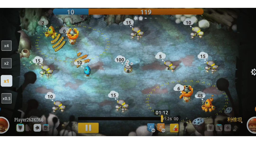 注意点: 1,首先分布占领马上升,不然兵数量一直会在饱和状态无法增加 2,布置完立马回防后,需要立马占领路口的小蘑菇 3,等待兵种增加,对面一定会在兵种最大时进攻,不过要保证路口的蘑菇(或者塔,或者铁匠铺)人数为零 4,进攻的时候要保证自己的兵实力比对面强