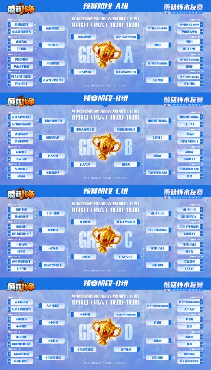 【赛事播报】第三届『蘑菇杯』水友赛16强