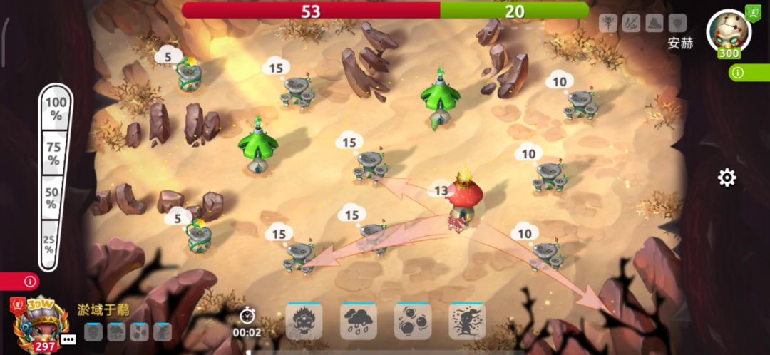 注意点: 1,首先分布占领马上升,不然兵数量一直会在饱和状态无法增加 2,布置完立马回防后,需要立马占领路口的小蘑菇 3,等待兵种增加,对面一定会在兵种最大时进攻,不过要保证路口的蘑菇(或者塔,或者铁匠铺)人数为零 4,进攻的时候要保证自己的兵实力比对面强
