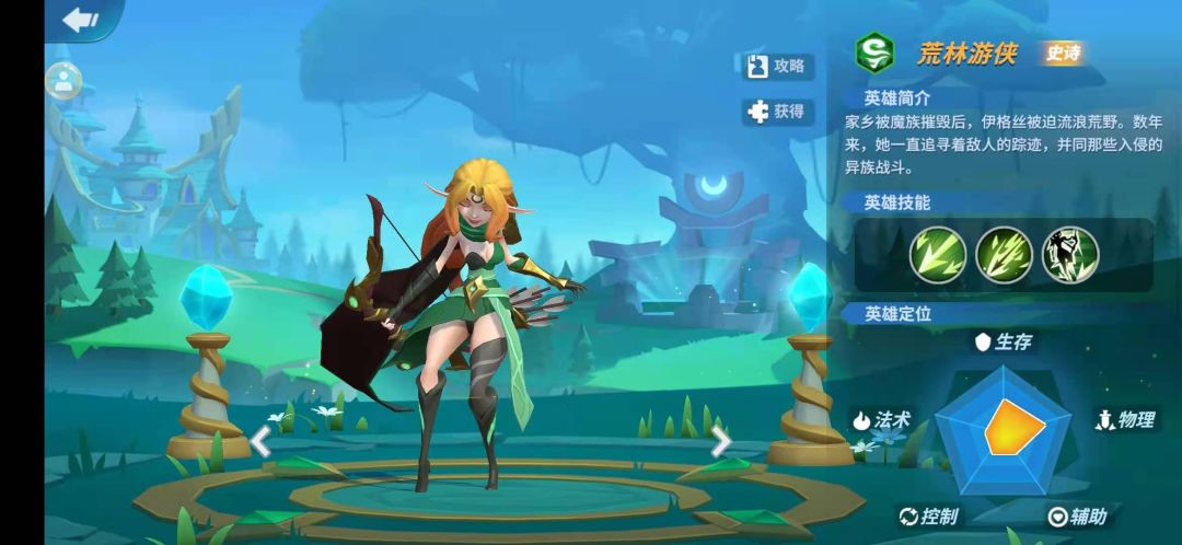 自然阵容英雄主体是精灵族与龙族,历经魔族祸乱,是目前攻击特效方面最多的阵容,整体强度不低,适合已经具有一定积累的大领主抽取组合,主体以后排输出和法师偏多,如果与其他阵容英雄搭配会有不俗表现,可以作为打野的强力阵容。下面我将为各位领主详细介绍各个英雄的推荐站位、主要技能与推荐套装 史诗 荒林游侠:后排输出,终极技能:荒林空响对一条直线敌人造成450%伤害,前期英雄的标准伤害,飞叶之矢是前排打击技能,