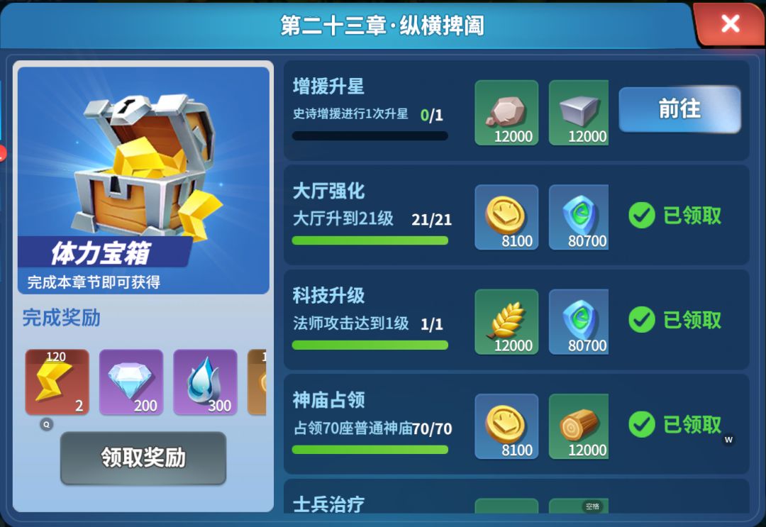 哈喽哈喽,宝子们,我来啦!一转眼我征战的章节已经玩到二十三章了,你们都玩到几章了呢?在玩的过程,你们有没有觉得哪个任务很难或者是一直卡在某个很难的关卡里,有的宝子在可以评论区告诉我,大家可以一起交流交流!我最近被卡在二十三章的增援升星那个任务好几天了,这个任务是把史诗增援进行一次升星,我感觉有亿点点难,要完成这个升星任务肯定得先得到一个史诗增援才能进行,要怎样获得史诗增援的碎片呢?那就接着往下看吧