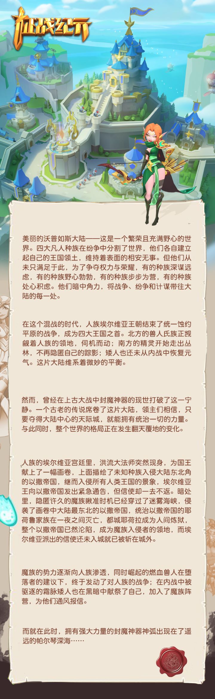亲爱的领主大人们,大家好~ 我是你们的薇薇安 ٩(๑•̀ω•́๑)۶距离上次测试已经过去三个多月了,大家有没有想我们呢 φ(≧ω≦*)♪在即将到来的二测之际,薇薇安又带着情报来啦!这也说明我们《征战纪元》的二测也马上要来了哦!(悄咪咪)同时也希望在二测和不远之后的公测前,安安带来的情报都能陪伴着领主大人们度过这段等待的时光~今天就让薇薇安带着领主大大们走进我们《征战纪元》发生的世界——沃普
