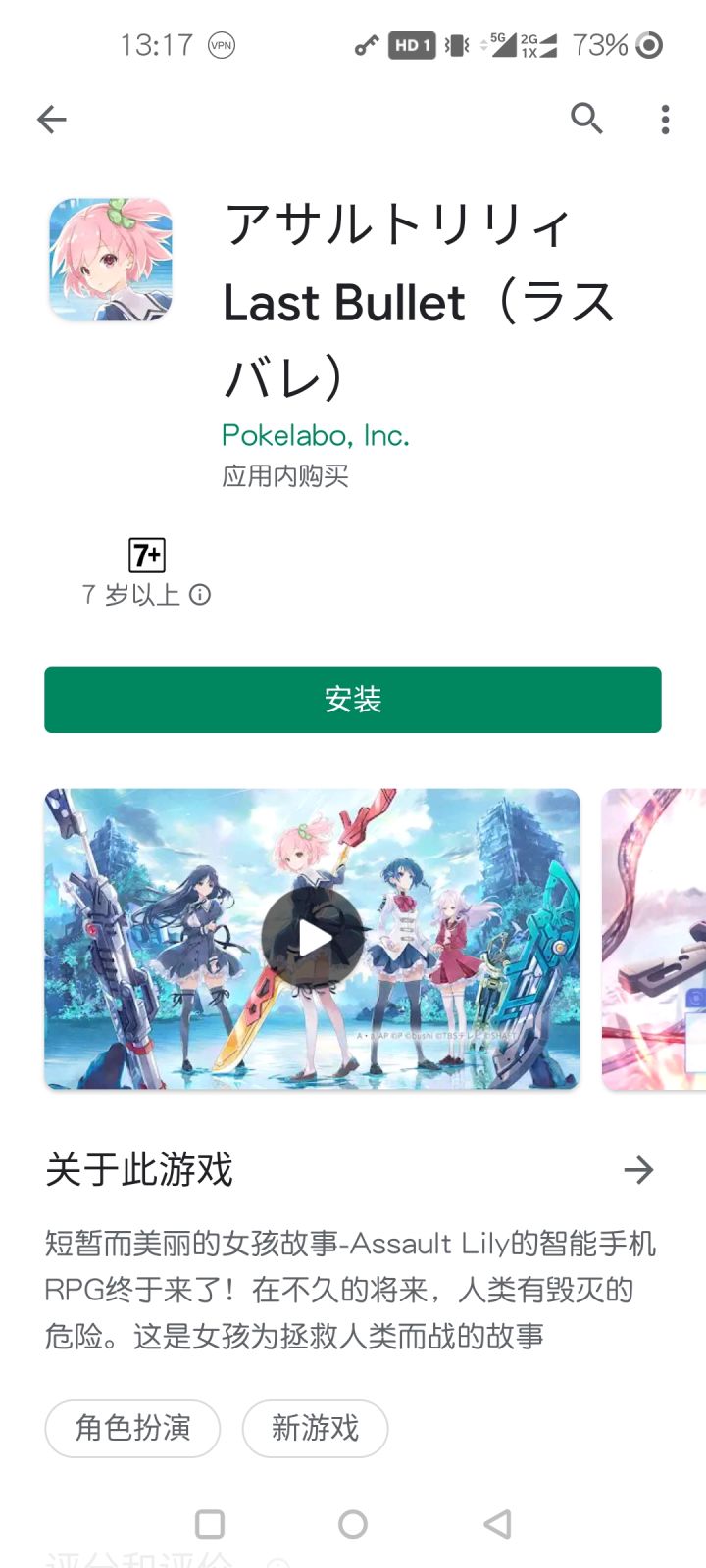 国际服是前几天刚发布的。日服是2021年1月发布的。本来本作是有台服的,在2023年5月停服了。看本作的动漫可以上小破站。萌新入坑建议入国际服,因为有中文。=下载方法=IOS:日服,转日区,搜“アサルトリリィ Last Bullet”国际服,转HK、TW等海外发行地区,搜“突击莉莉”安卓:找不到在哪下的话,。后续更新也一样=初入游戏=会有5G左右的游戏资源需要加载,感觉速度慢,