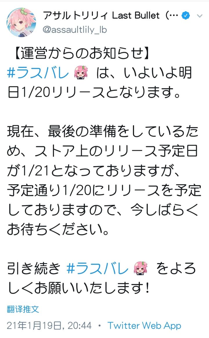 去年简单的写过一个日服的入坑帖,前几天台服上线了,所以简单整理一下,写个汇总帖。记得日服开服的时候,正是本作的同名番剧在小破站热播的时候吧,那时候还挺热闹的,现在带繁中的台服上线了,却好像没那么热闹了。本作作为一个粉丝向的游戏,现在入坑前还是可以先到B站看番的,相信XDM的游戏体验更佳。=下载方法=IOS:日服:可以到日区商店里下载,搜索英文“Last Bullet”或者日文“アサルトリ