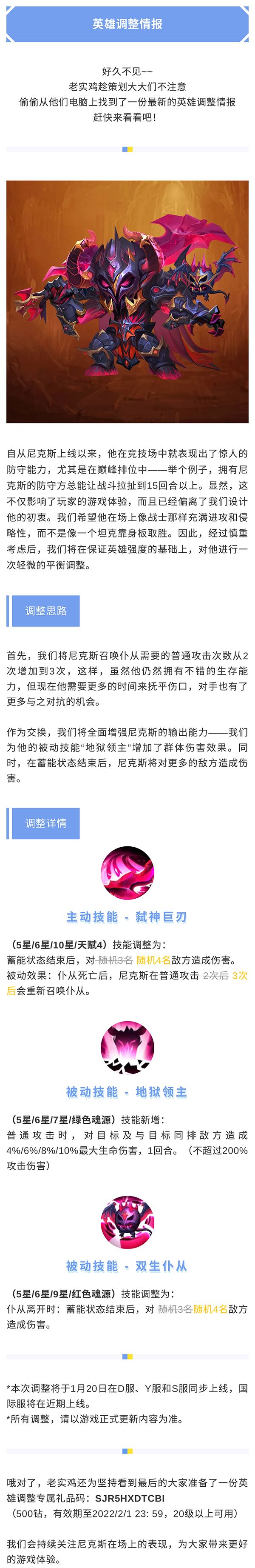 内含礼包丨《奇幻世界英雄》地狱战士-尼克斯调整情报
