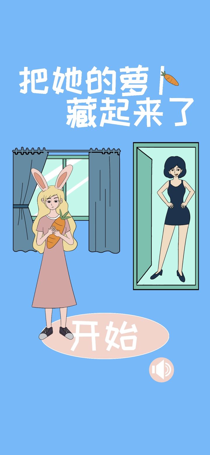 关卡都很简单,很快就能通关,无广告,一共20关,这20关也没有关卡解锁限制,可随意选关,提示也不用看广告。故事背景有点无厘头,为什么妈妈一定要拿走兔子的胡萝卜?既不是游戏机也不是零食。