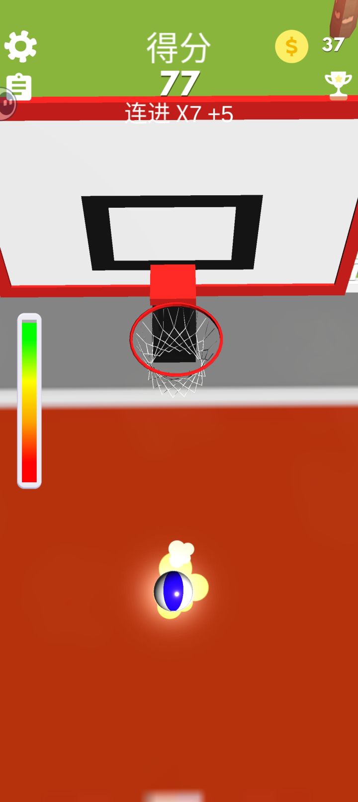 投篮投中的时候的确会感到很爽,但时间长了就会觉得有点枯燥无味了。然而这款游戏的玩法就只有这,可操作的地方是少之又少。不要求游戏做画面方面的升级,只希望玩法能够再拓展一点,或者是加入一些皮肤等,让游戏变得更耐玩一些。