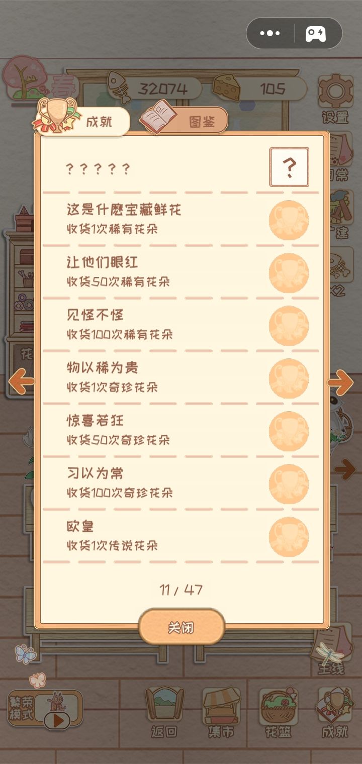 花店的全成就太费肝且看脸了,估计没个个把月是完不成的,一个小汇总分享给肝帝大佬和全成就强迫症的病友们~ 佛系玩家都可以达成的成就 种种花,旅旅游,成就于我如浮云。 咦?我啥时候有了这些成就! 啦啦啦,啦啦啦,我是种花的小行家 种植以下花种次数达1/50/100 终于等到你,还好我没放弃 npc全图鉴(待解锁。。。) 1 绅士孔雀2说书龙3纱绘4神秘人5酥6帽子7路人兔8路人熊9方便面10路人狗11