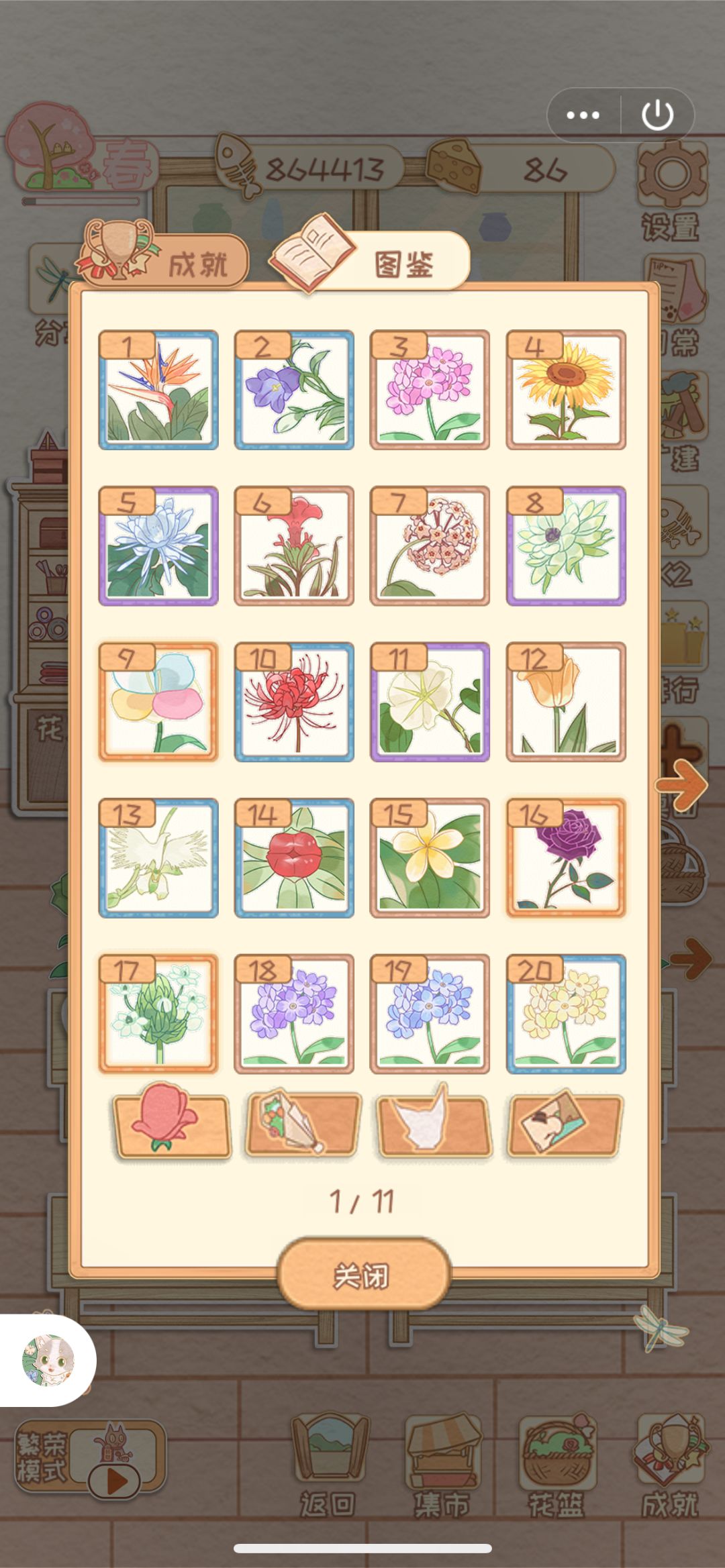 🌸🌸集市花种价格表:(方便大家种花、做花束) 🏠🏠房屋外观:(房子升到最高等级后,可解锁新的外观,会获得传说级别的花种) 🔻最终升级(最终升级完就解锁了集市所有的花种) 🔻传统中华(解锁后获得传说花种:泥金九连环) 🔻日式花店(解锁后获得传说花种:九重樱) 🔻奇幻童话(解锁后获得传说花种:神秘之吻) 🔻以上希望对大家能有所帮助,最后祝大家游戏愉快!🎉🎉🎉(玩了三天,有点上头,图鉴基本解锁的差不多了